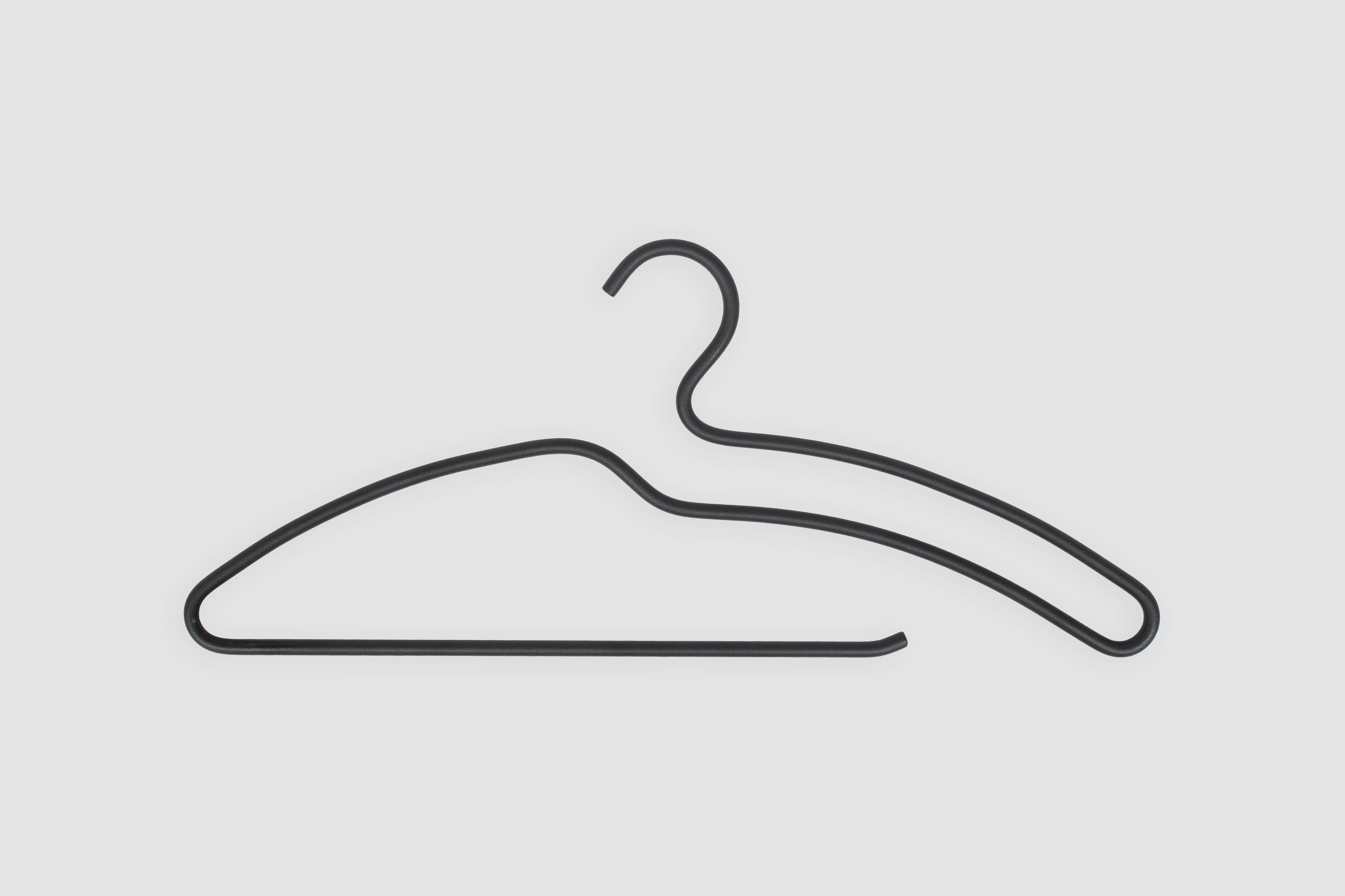onegerは1本の鉄の棒を折り曲げて成形したハンガー。ミニマルで無駄のないその造形は、自宅のクローゼットはもちろん店舗様の什器としてもご利用いただけます。